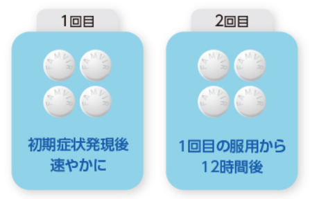 - すぐにお薬を服用する。 お薬には、1回で服用を終えるものと、2回服用するものがあります。