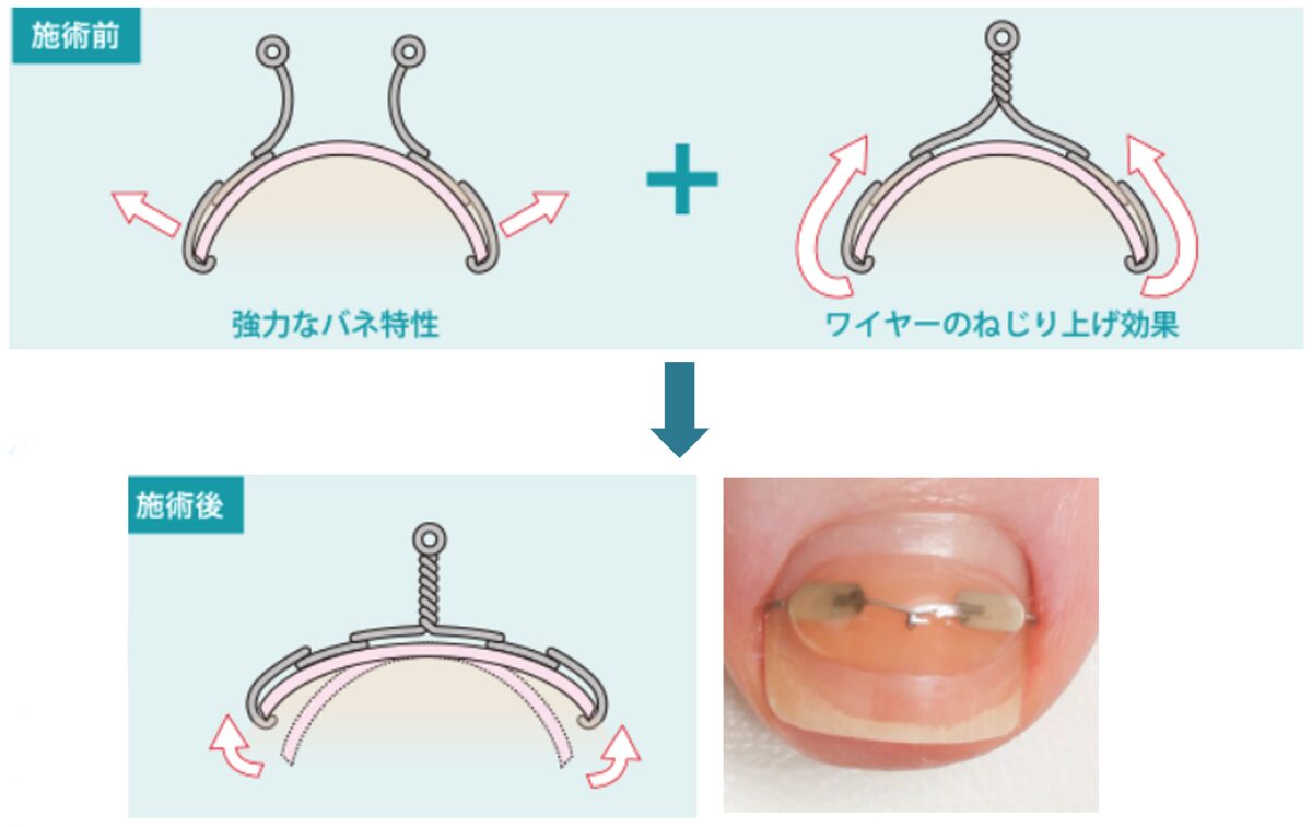 - 2~3ヶ月かけてワイヤーが爪の先まで来ると、ワイヤーに矯正力がなくなります。