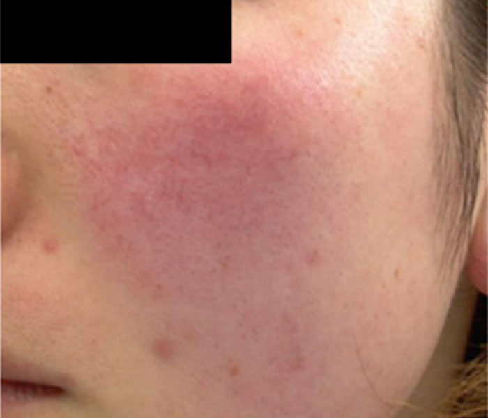 - 赤ら顔治療で用いられることがあるVビームよりも、施術時の痛みが少ない特徴もあります。