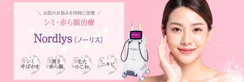 - Nordlys(ノーリス)は、シミや赤みに反応する光を照射するだけでなく、皮膚の奥深くまで届く波長を含んでおり、コラーゲンやエラスチンを生成し、肌のキメを整えハリや弾力・毛穴の改善効果が期待できます。
